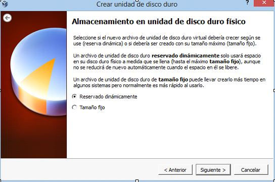 En almacenamiento en unidad de disco duro eligiremos Reservado dinamicamente.